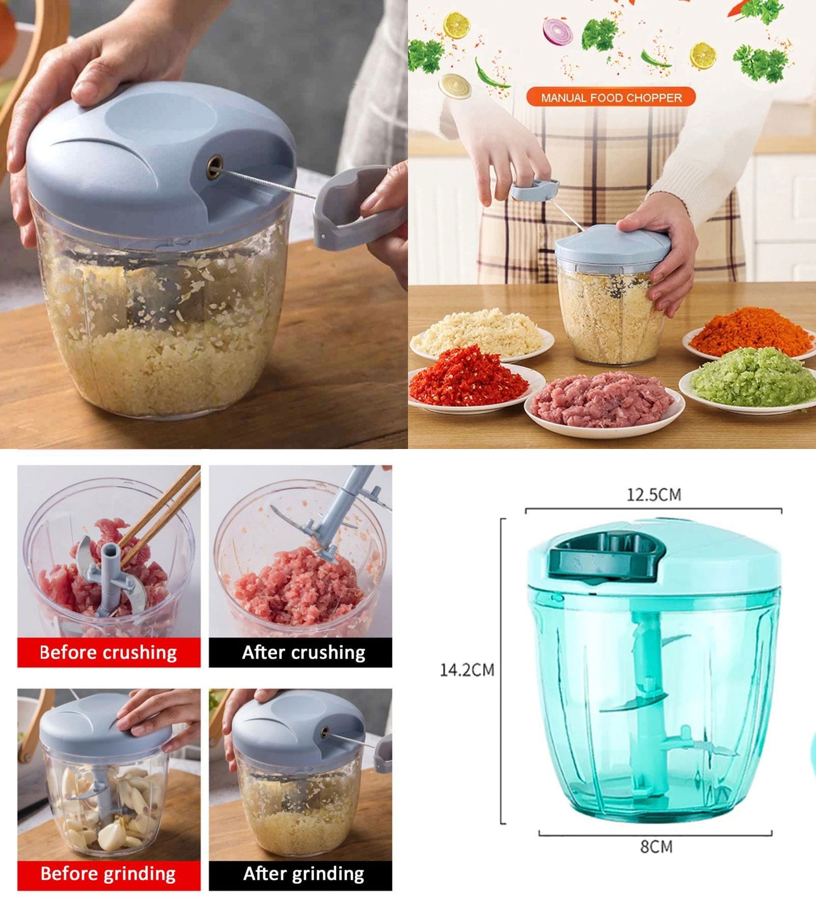 900 ML/500ML Chopper with Sharp Blades, a speedy and efficient manual chopper designed to simplify your food preparation. With a large capacity of 900ML/500ML, this chopper is perfect for chopping, mincing, and blending various ingredients. The chopper's sharp blades ensure quick and precise cutting, while the durable material guarantees long-lasting use. Ideal for kitchen enthusiasts and professional chefs, this chopper is a versatile addition to your kitchen utensils collection.